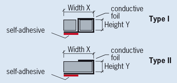 For example: Height Y 5mm, Width 10 mm with Amucor foil in two separate parts: 73-5-10-5-A-II.