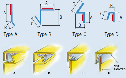 See technical drawing, type A, B, C or D |